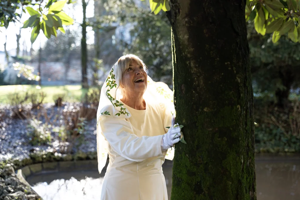 These are not staged biographies but symbolic embodiments. Each participant selected a virtue that resonated with her journey — Noemi, who recovered her voice after a palate tumour and now conducts a choir, chose a form of renewed expression; Anita, who developed a deep, healing dialogue with nature during treatment and now tends an olive grove, embodied perseverance. Their garments are more than costumes: they function as emotional prostheses, helping the women to externalise complex inner transformations and to present them publicly with dignity.