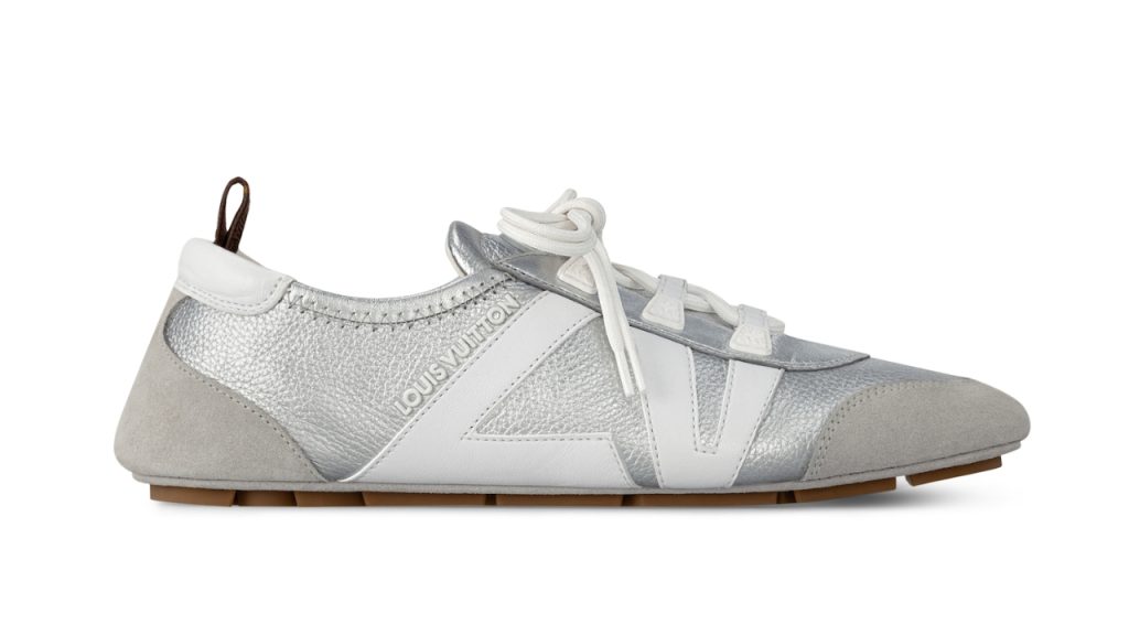 Luxury houses and high‑street brands alike have reimagined the sneaker in silver. Louis Vuitton’s Sneakerina blends ballerina grace with sneaker ease — a hammered leather upper and flexible TPU sole make it an elegant option for pairing with midi skirts. Jil Sander’s satin and suede Etage model offers a sleeker, elevated look for those who want metal with structure. For everyday practicality, Geox’s vintage‑inspired low‑cut silver trainers deliver breathability and comfort with a nostalgic silhouette.